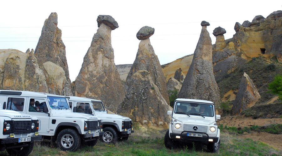 Kapadokya’nın heyecanlı yönünü yaşayın ve bir Jeep Safari turuna çıkın. Kapadokya etrafında gezinmek eğlenceli bir off-road macerası olabilir. Bölgenin ünlü vadilerini görün, muhteşem manzaraların keyfini sürün ve doğanın güzelliğine şahit olun. Kapadokya Jeep Safari Turu, sakin ve farklı bir macera arayanlar için mükemmeldir. Jeep safari, yaz ve kış mevsimlerinde gün doğumu ve gün batımı saatlerine göre yapılır. Fiyat araç başıdır(4 kişiye kadar),tercihen gün doğumu ve batımında yapılabilir.